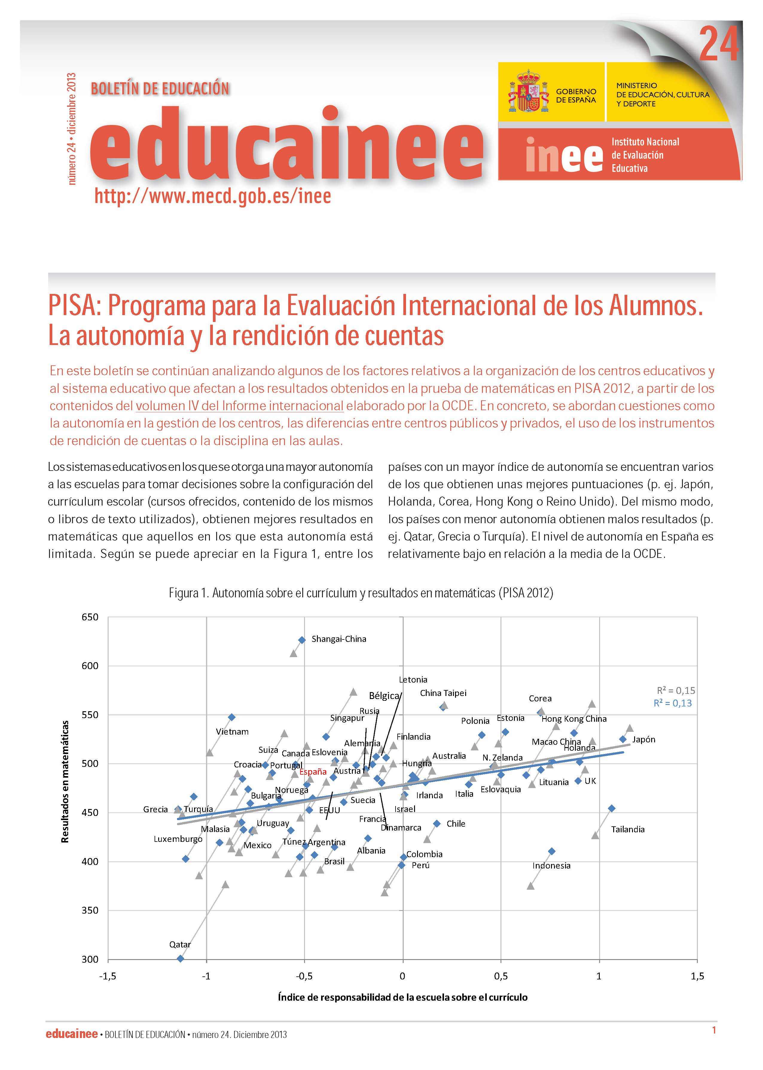 Boletín de educación educainee nº 24. PISA: Programa para la Evaluación Internacional de los Alumnos. La autonomía y la rendición de cuentas