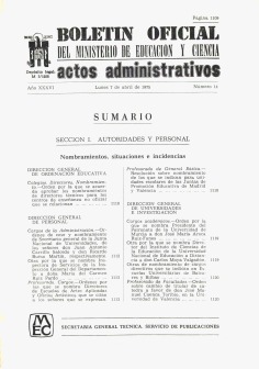 • Boletín Oficial del Ministerio de Educación y Ciencia año 1975-3. Actos Administrativos. Números del 27 al 39 e índice 3º trimestre