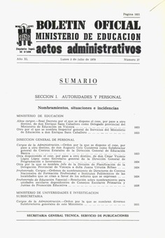 Boletín Oficial del Ministerio de Educación y Ciencia año 1979-3. Actos Administrativos. Números del 27 al 39 más 1 número extraordinario e índice 3º trimestre