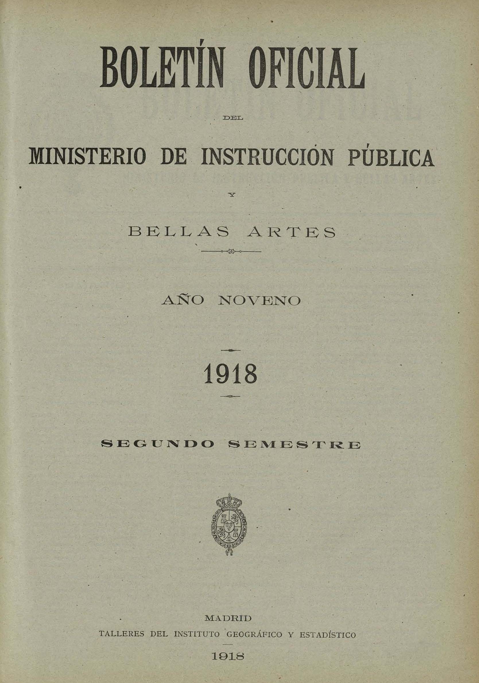 Boletín Oficial del Ministerio de Instrucción Pública y Bellas Artes. Año 1918. Segundo semestre. Números del 53 al 105