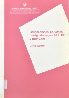 Calificaciones, por áreas o asignaturas, en EGB, FP y BUP-COU. Curso 1990-91