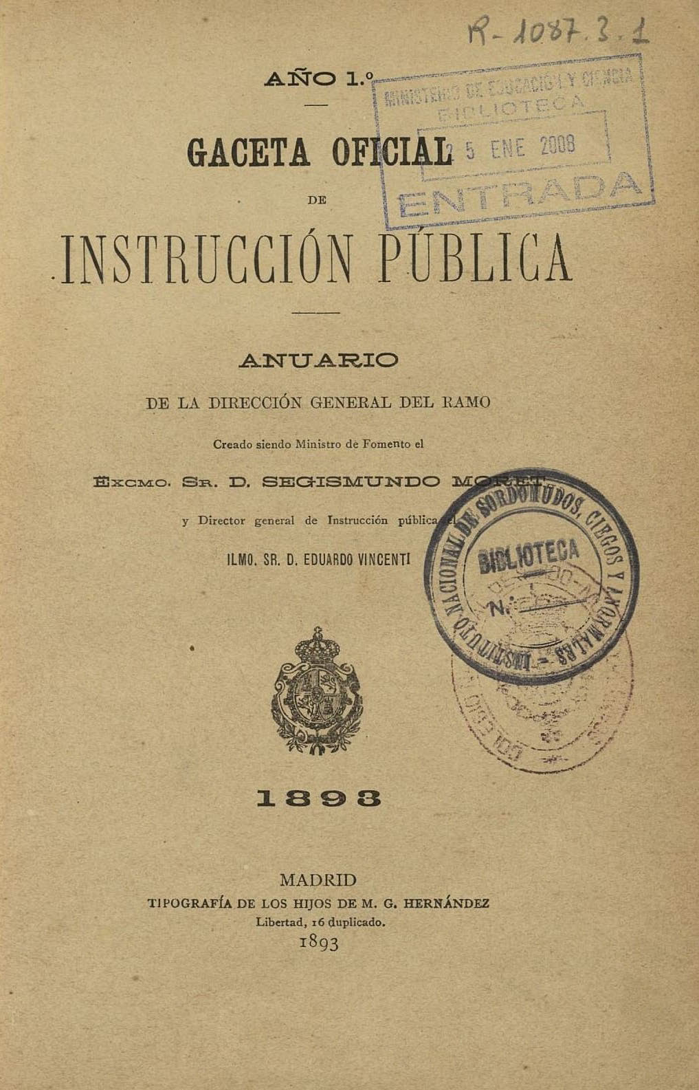 Gaceta Oficial de Instrucción Pública. Anuario de la Dirección General del ramo. 1893