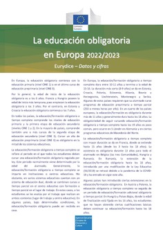 La educación obligatoria en Europa 2022/2023. Eurydice - Datos y cifras