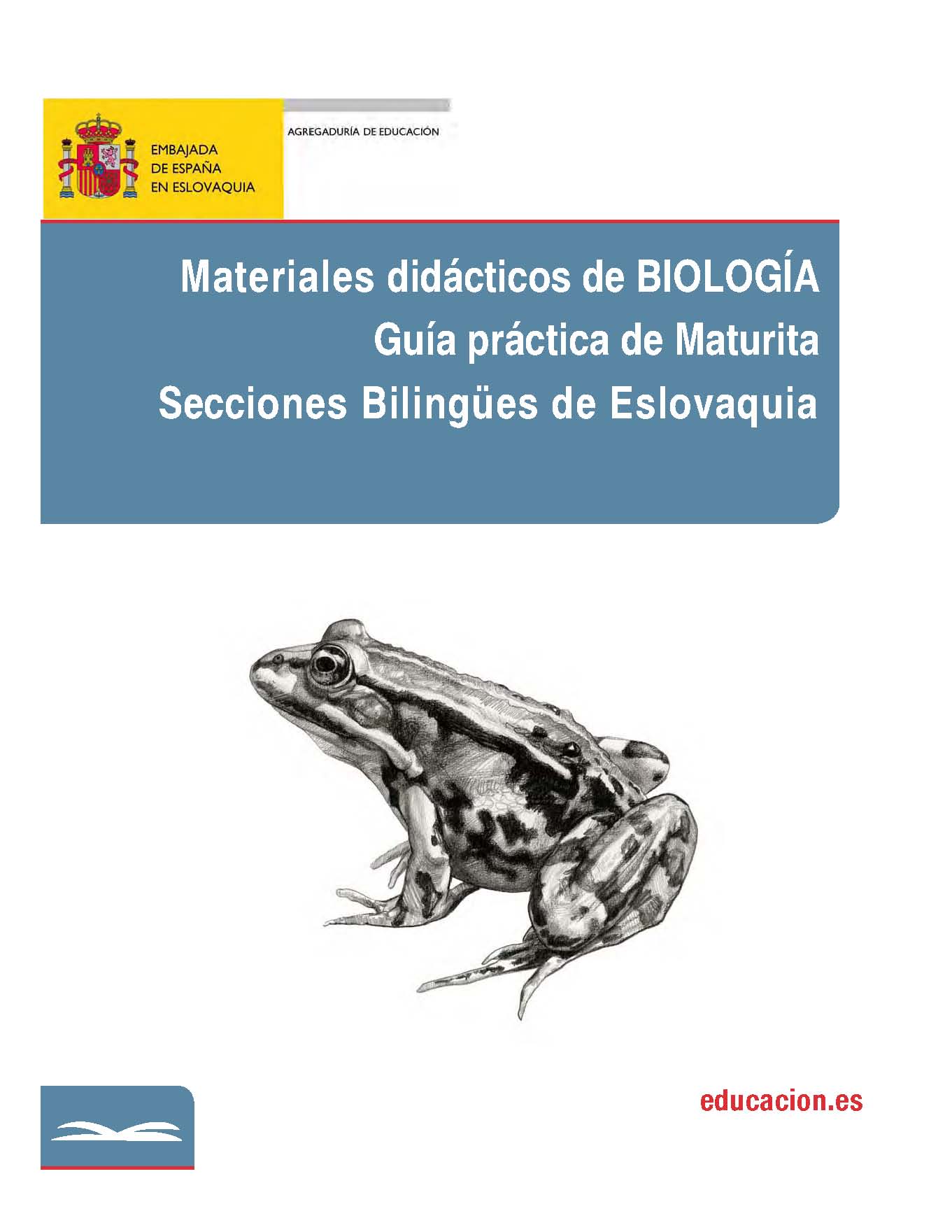 Materiales didácticos de Biología. Guía práctica de Maturita. Secciones Bilingües de Eslovaquia, ha sido realizada de manera coordinada por los profesores de la asignatura con el propósito de facilitar a la enseñanza de la Biología en las Secciones Bilingües de Eslovaquia un instrumento de homogeneidad con vistas, especialmente, a las pruebas de Bachillerato, y de suministrar al profesorado y al alumnado textos y materiales pedagógicos de utilidad básica, que compaginen las exigencias de los currículos eslovacos y españoles en este modelo de enseñanza integrada que son las secciones bilingües.