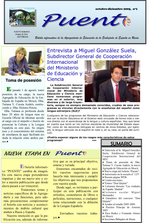 Puente nº 1. Boletín informativo de la Agregaduría de Educación de la Embajada de España en Rusia