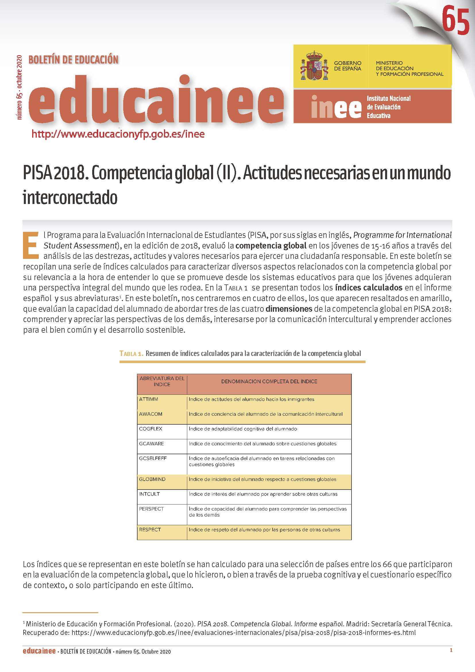 Boletín de educación educainee nº 65. PISA 2018. Competencia global (II). Actitudes necesarias en un mundo interconectado