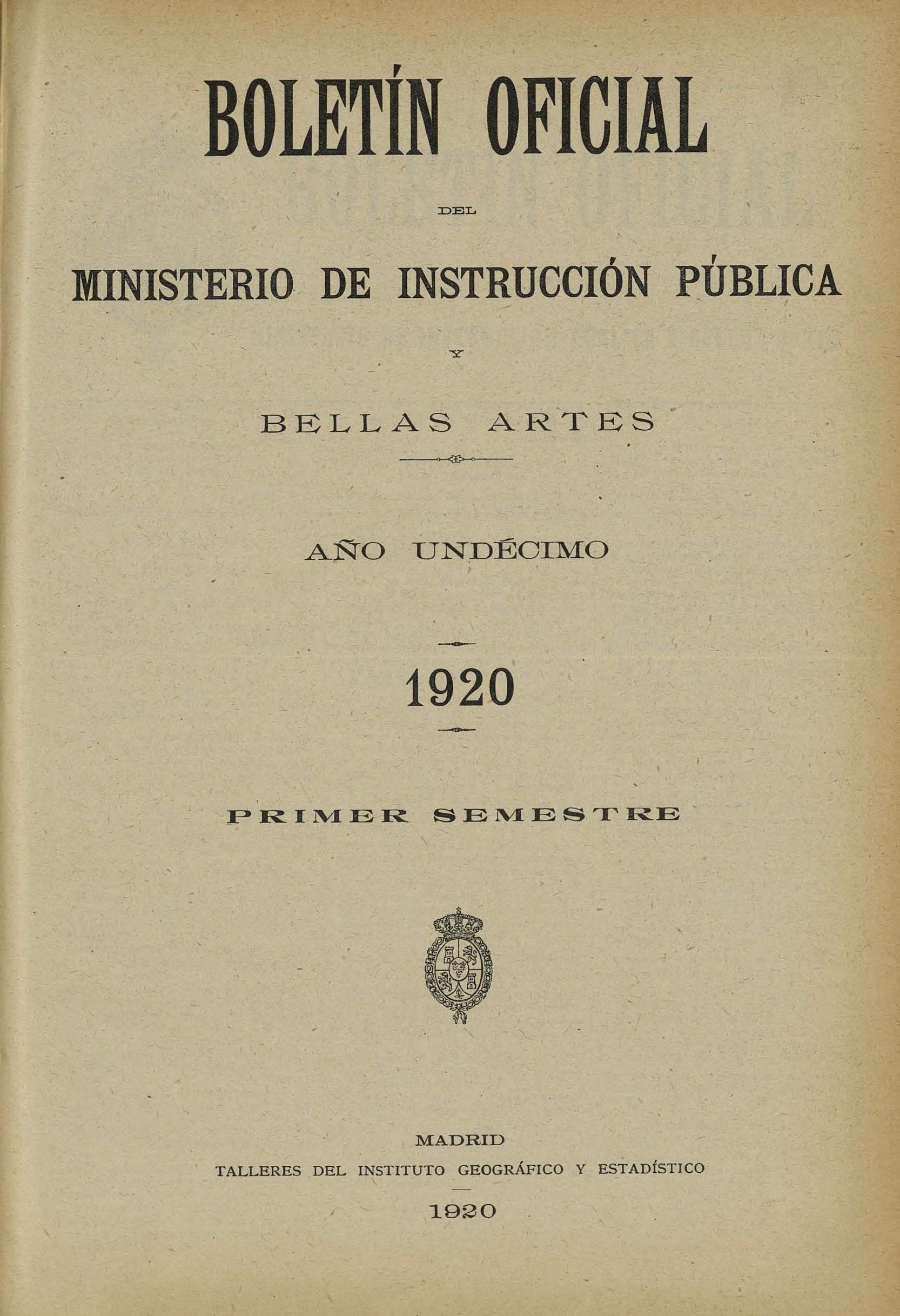 Boletín Oficial del Ministerio de Instrucción Pública y Bellas Artes. Año 1920. Primer semestre