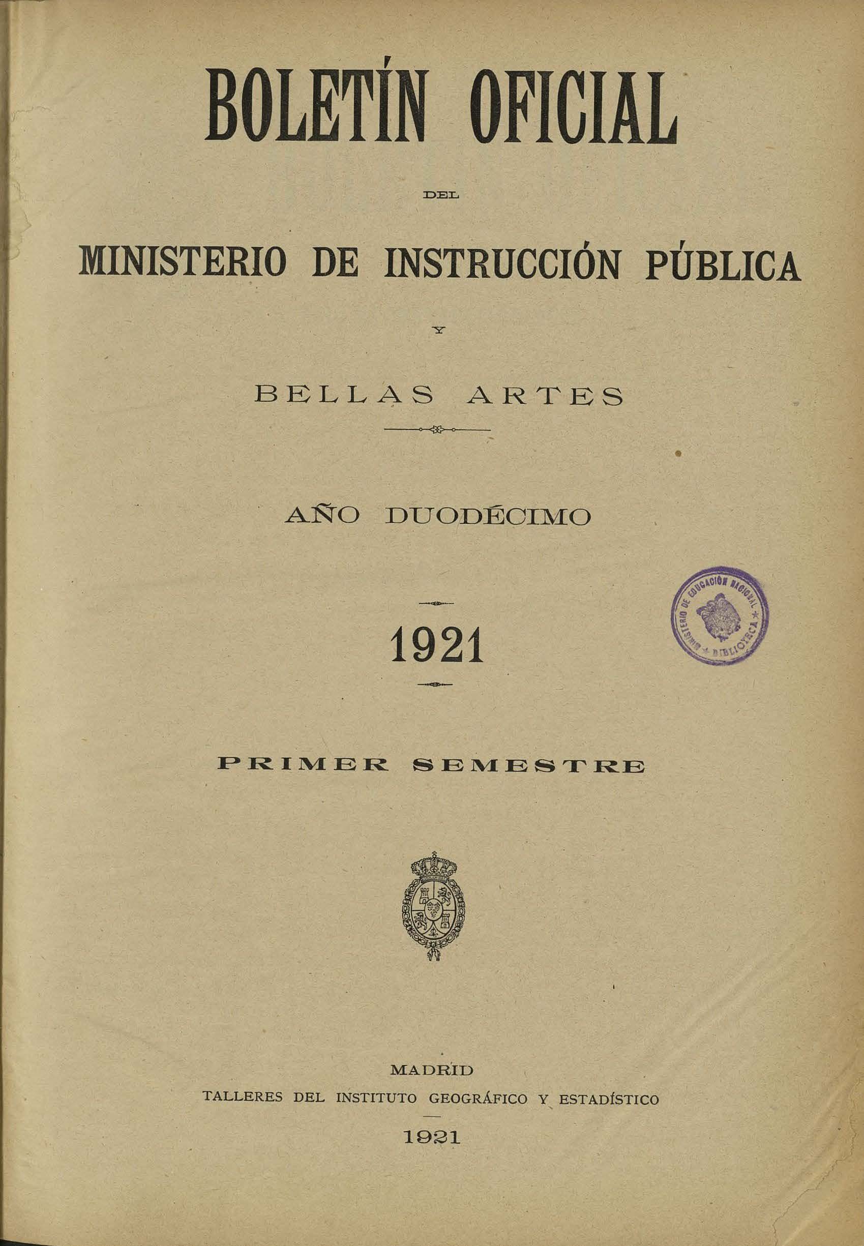 Boletín Oficial del Ministerio de Instrucción Pública y Bellas Artes. Año 1921. Primer semestre