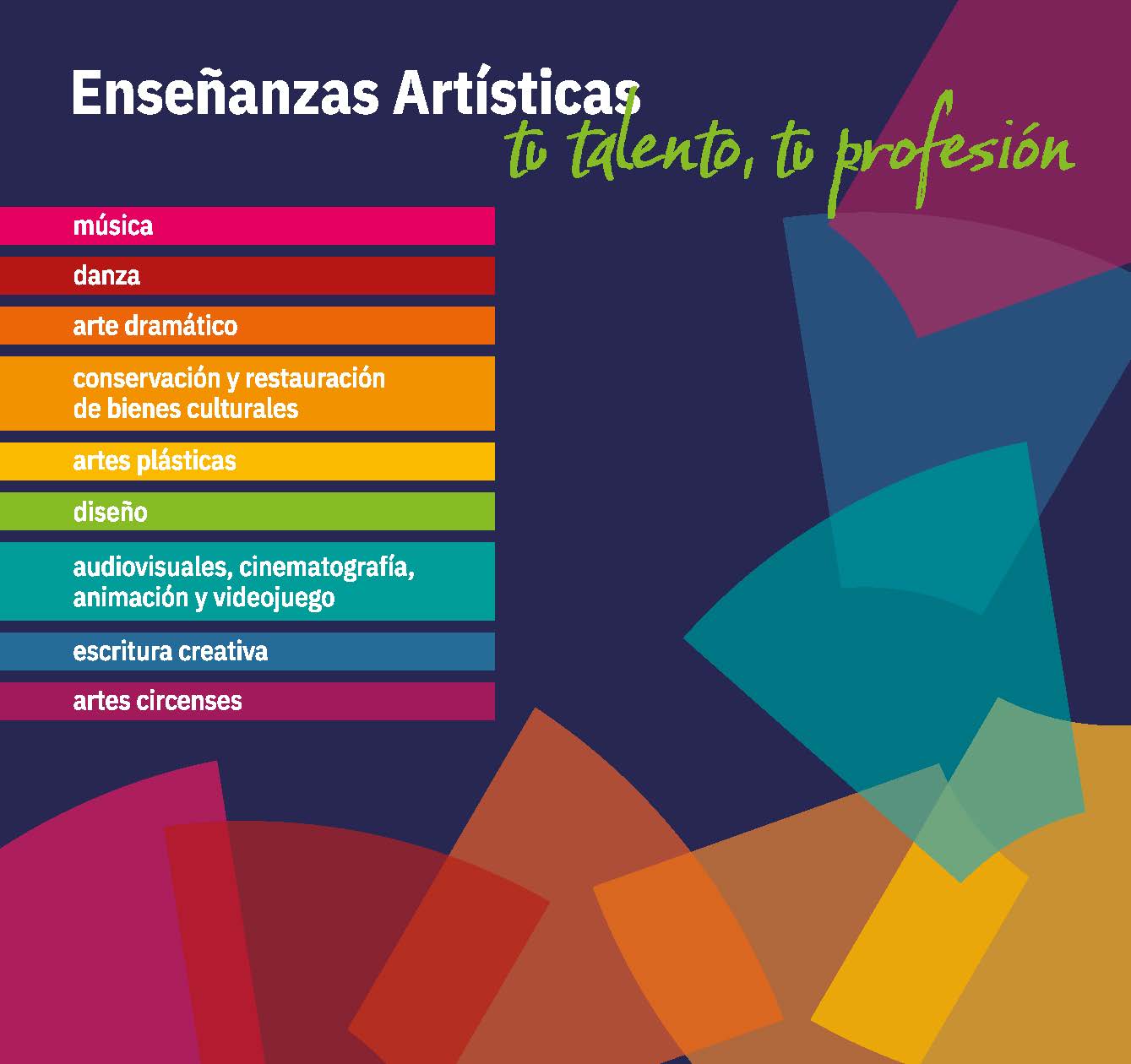 En este folleto encontrarás información sobre las disciplinas y sus especialidades, salidas profesionales. etc. Puedes utilizarlo para orientar a los estudiantes sobre las opciones de formación en las enseñanzas artísticas. Todas las enseñanzas son oficiales, y permiten diferentes itinerarios de formación, desde ciclos formativos de grado medio a grados en enseñanzas artísticas superiores (que son iguales a los de la Universidad).