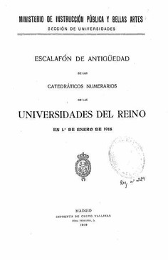 Escalafón de antigüedad de los catedráticos numerarios de las Universidades del Reino. 1918