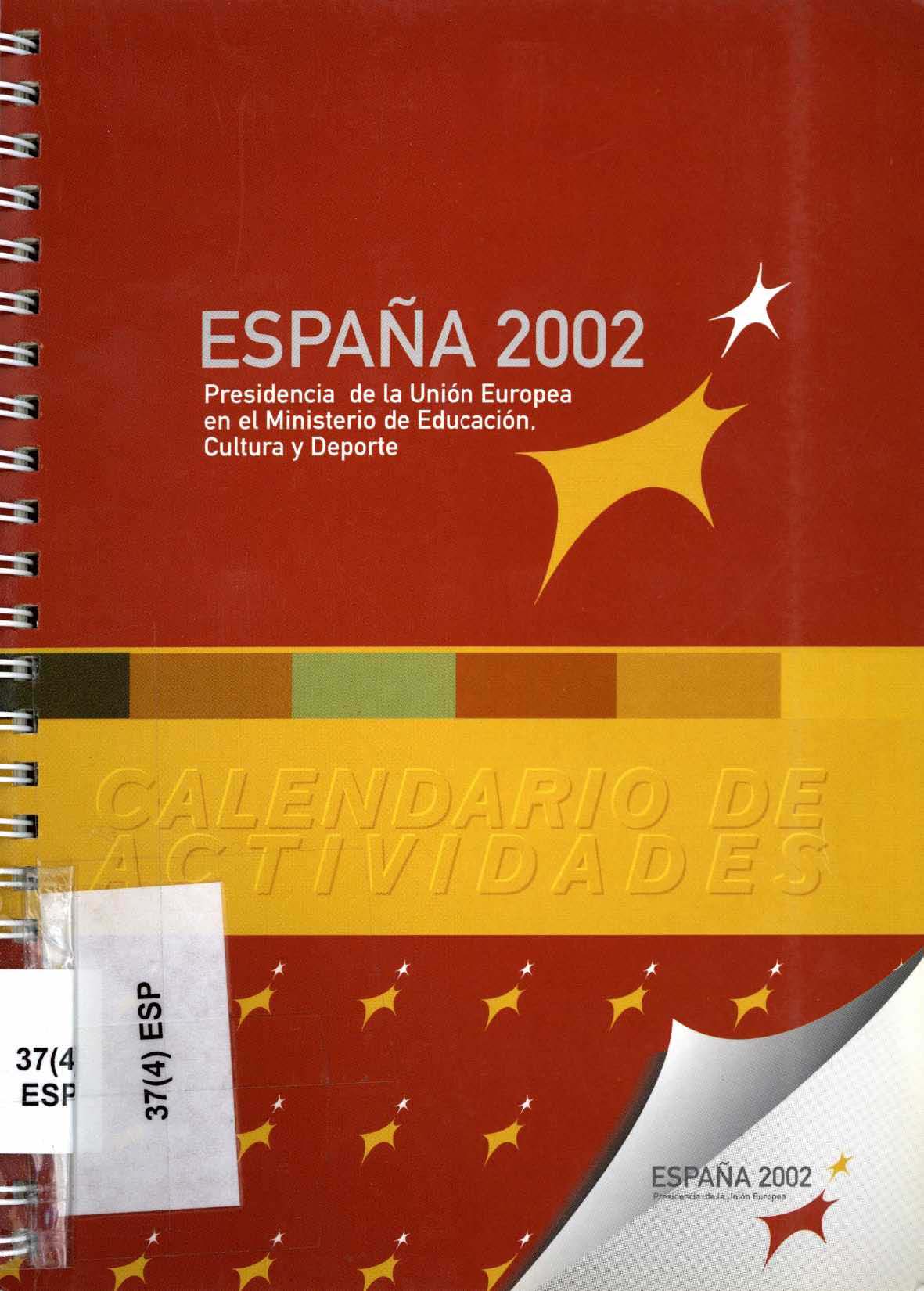 España 2002. Presidencia de la Unión Europea en el Ministerio de Educación, Cultura y Deporte. Calendario de actividades
