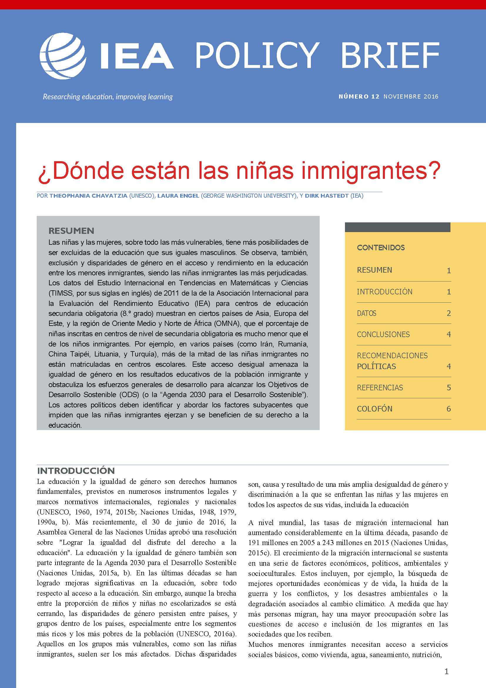 Policy Brief 12. ¿Dónde están las niñas inmigrantes?