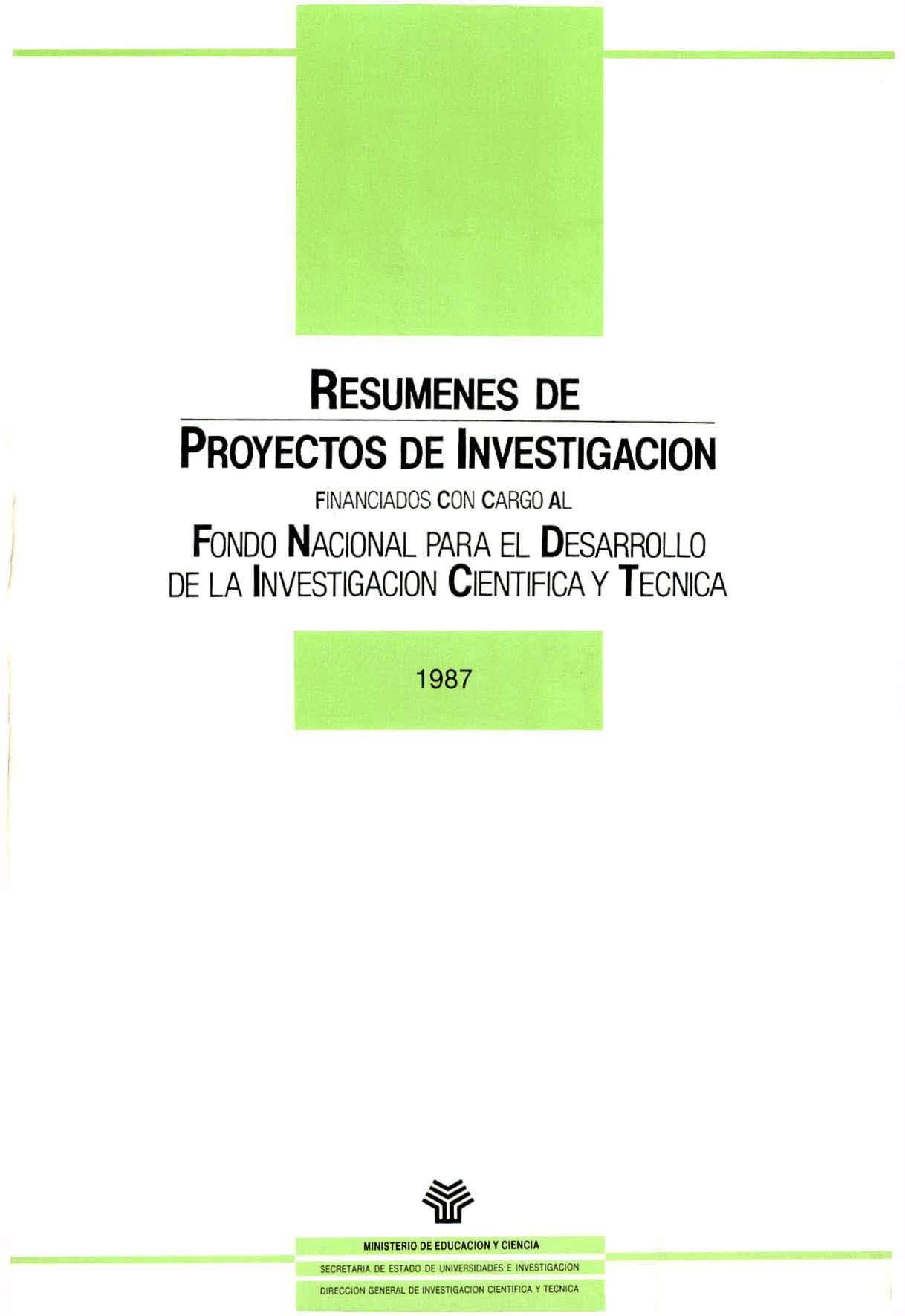 Resúmenes de proyectos de investigación financiados con cargo al fondo nacional para el desarrollo de la investigación científica y técnica. Año 1987