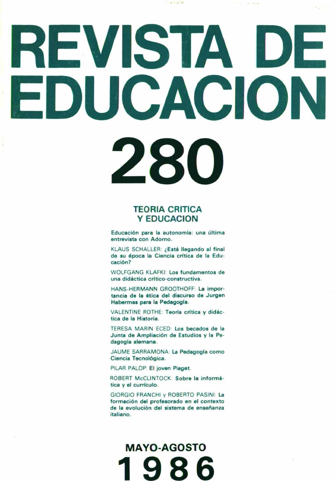Revista de educación nº 280. Teoría crítica y educación