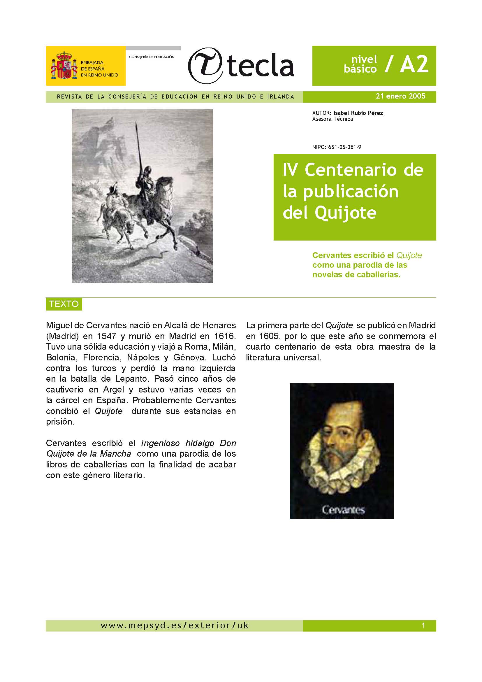Tecla. Revista de la Consejería de Educación en Reino Unido e Irlanda. 21 enero 2005