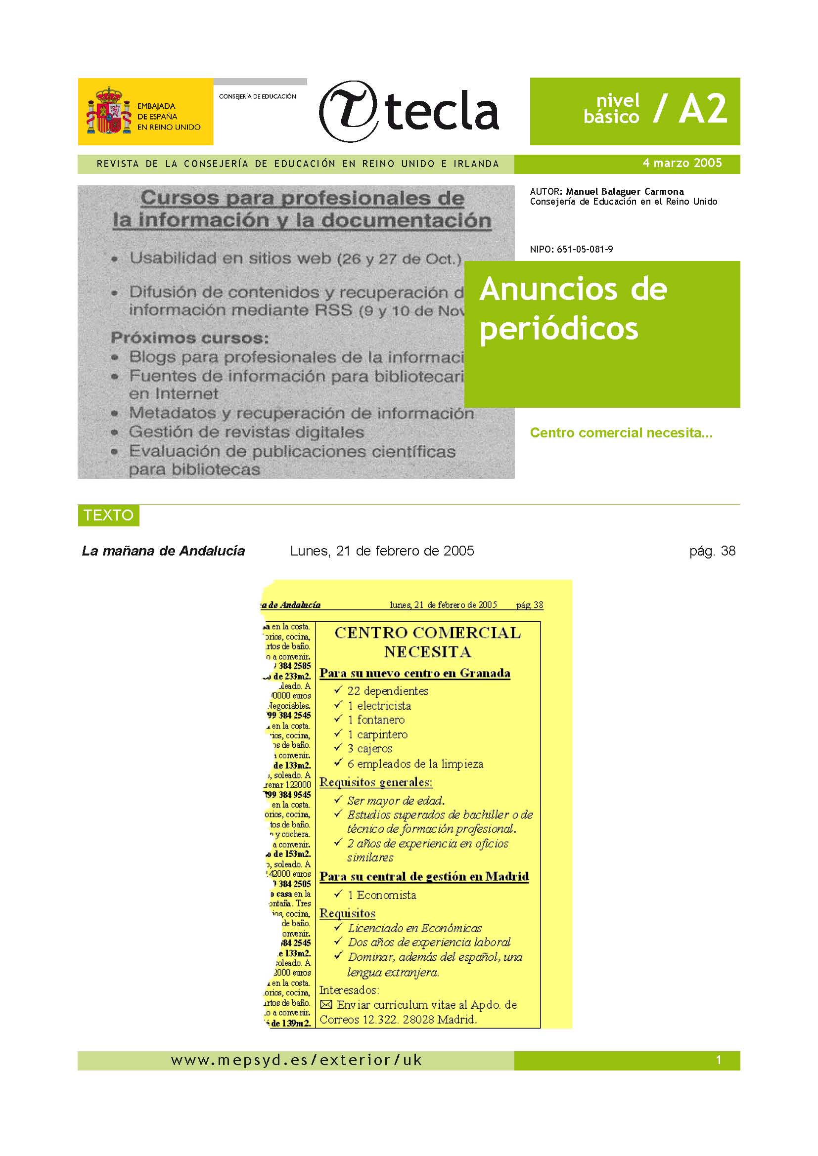 Tecla. Revista de la Consejería de Educación en Reino Unido e Irlanda. 4 marzo 2005