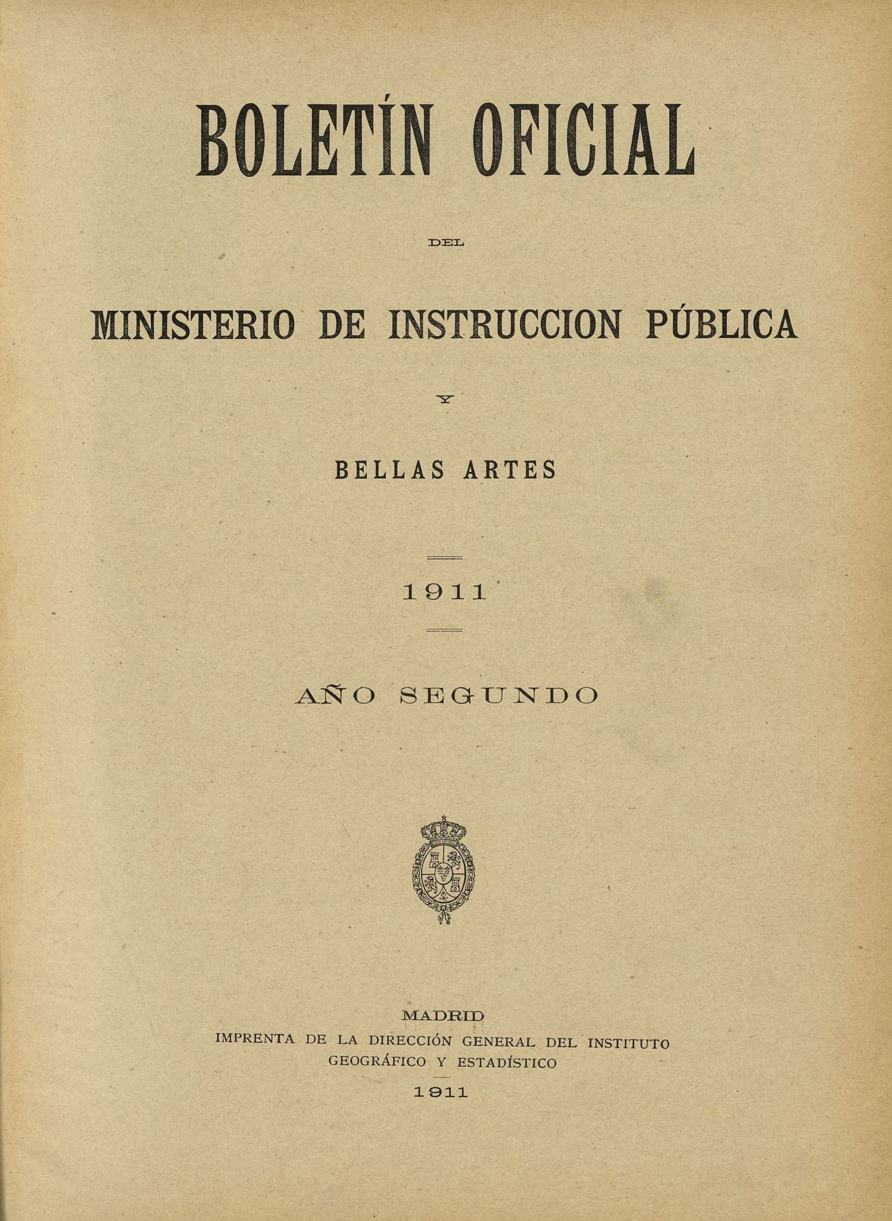 Boletín Oficial del Ministerio de Instrucción Pública y Bellas Artes. Año 1911