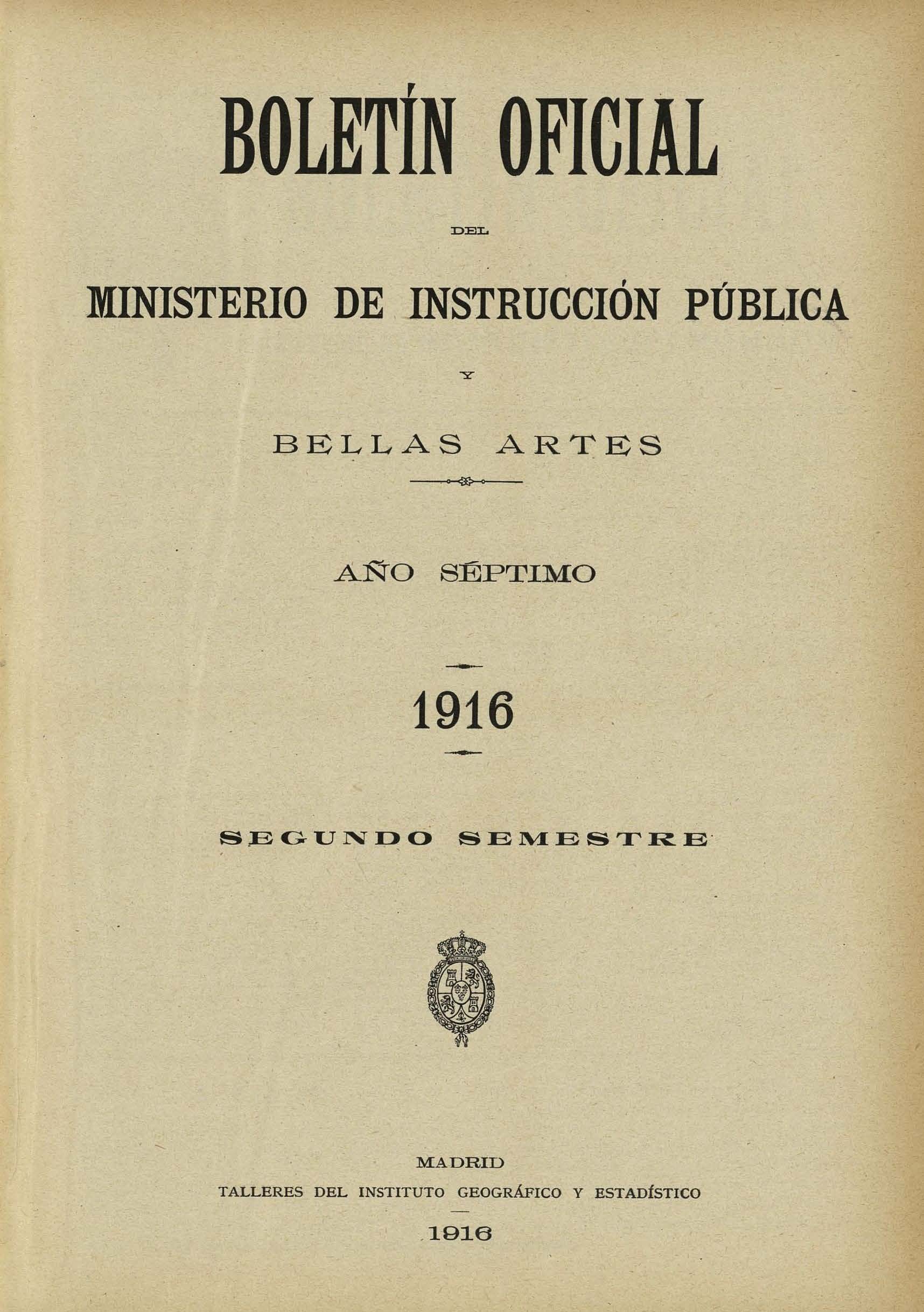 Boletín Oficial del Ministerio de Instrucción Pública y Bellas Artes. Año 1916. Segundo semestre. Números del 53 al 104