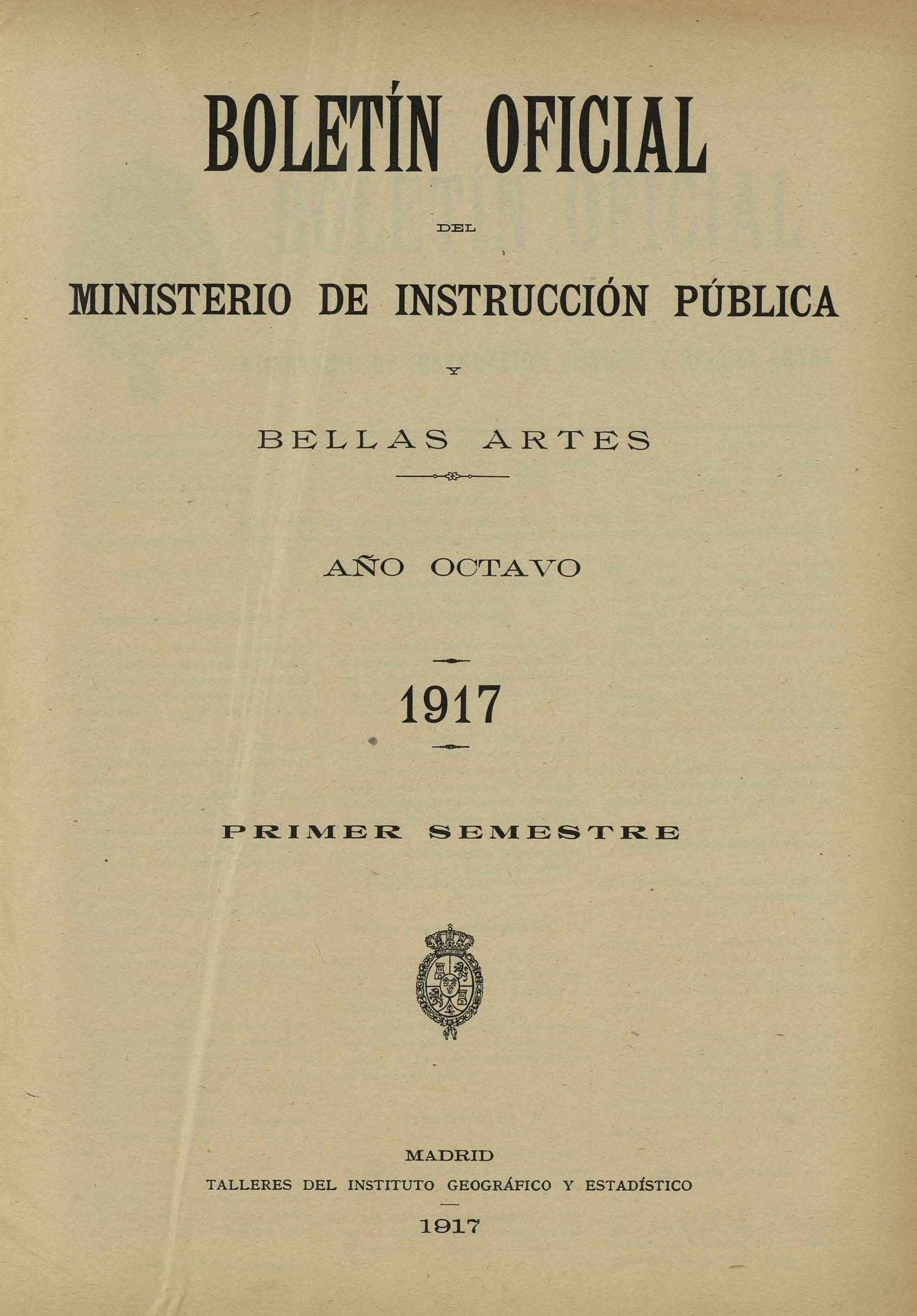 Boletín Oficial del Ministerio de Instrucción Pública y Bellas Artes. Año 1917. Primer semestre. Números del 1 al 52