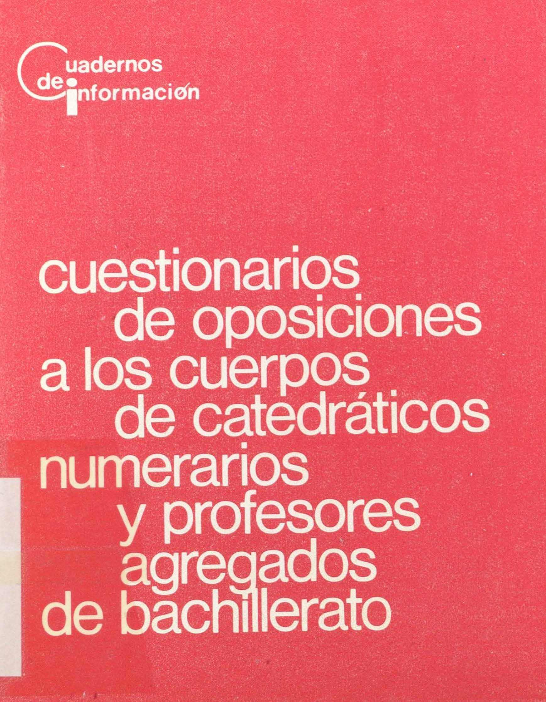 Cuestionarios de oposiciones a los cuerpos de catedráticos numerarios y profesores agregados de bachillerato
