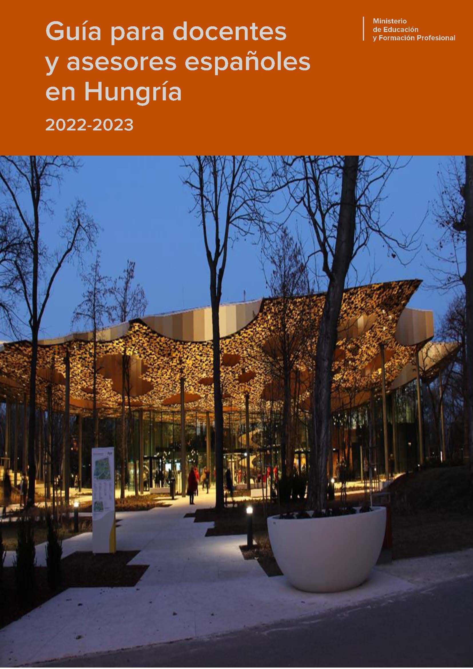 La Guía para docentes y asesores españoles 2022-2023 es una publicación que ofrece información útil y actualizada para cada curso académico y está destinado a los nuevos a los profesores españoles que se incorporan en una plaza en alguno de los siete centros educativos en el Programa Bilingüe de Español en Hungría. La información se agrupa en los siguientes apartados principales: gestiones administrativas e instalación en el país, el programa de secciones bilingües en el marco educativo de Hungría, formación de profesorado, datos generales sobre el país, trámites más importantes y direcciones de web útiles para recabar otros datos complementarios que fueran de interés.
