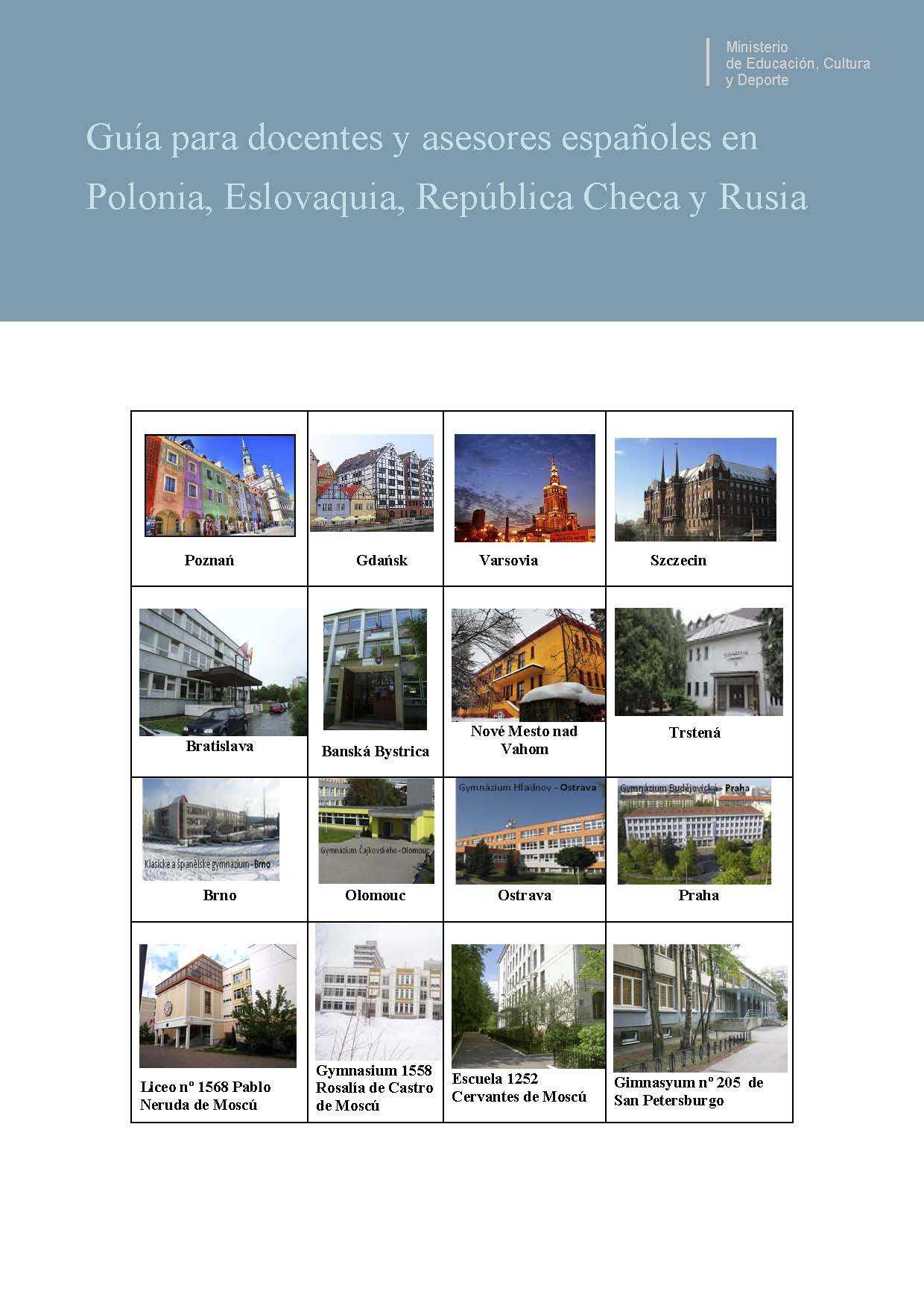 La presente Guía, destinada a los asesores y profesores españoles que se incorporan anualmente a las Secciones Bilingües de español de Eslovaquia, Polonia, República Checa y Rusia, tiene como objetivos fundamentales proporcionar al profesorado la información necesaria para el desarrollo de su actividad docente en el país y facilitarles la adaptación a su nuevo entorno.