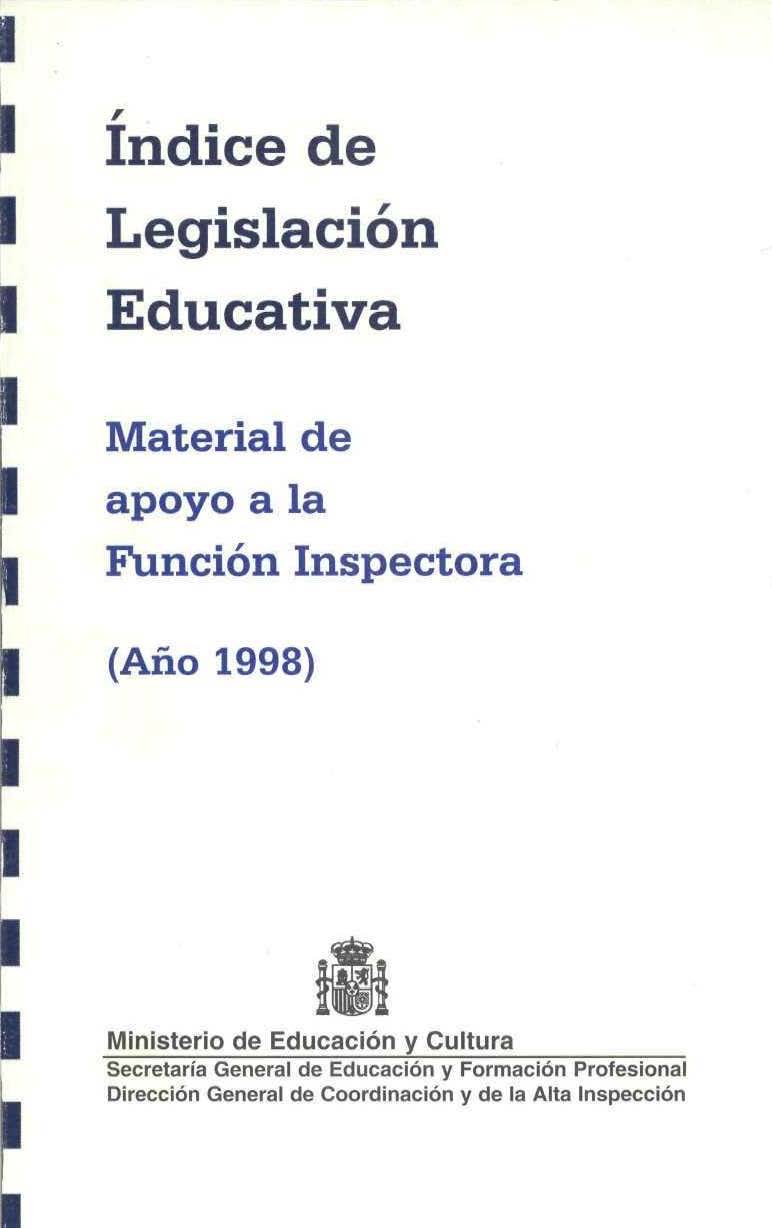 Índice de legislación educativa (año 1998). Material de apoyo a la función inspectora