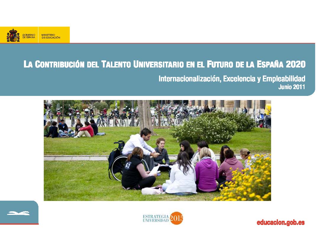 La contribución del talento universitario en el futuro de la España 2020. Internacionalización, excelencia y empleabilidad. Junio 2011 = The contribution of university talent to the future of Spain 2020. Internationalization, excellence and employability.