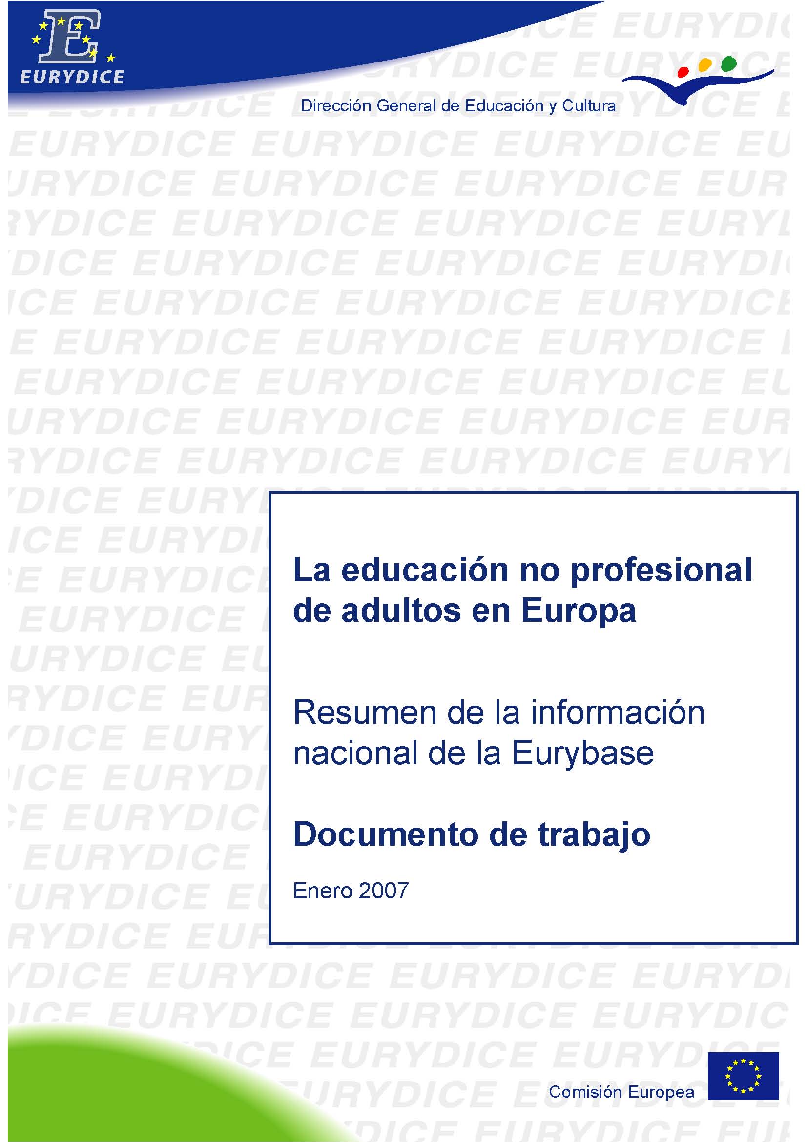 La educación no profesional de adultos en Europa. Resumen de la información nacional de la Eurybase. Documento trabajo enero 2007