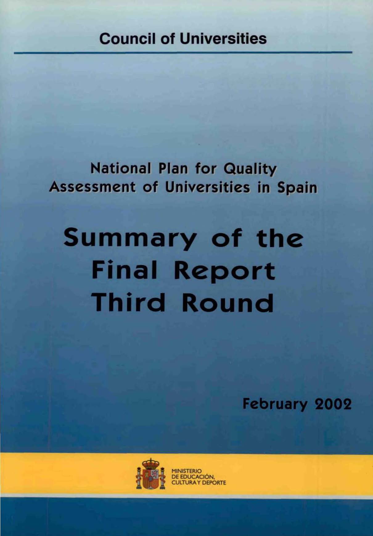 National plan for quality assessment of universities in Spain. Summary of the final report third round. February 2002