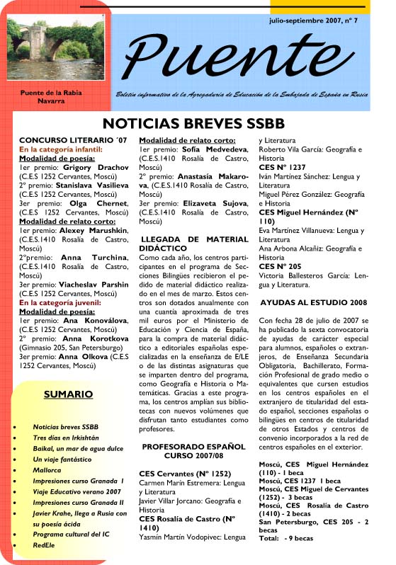 Puente nº 7. Boletín informativo de la Agregaduría de Educación de la Embajada de España en Rusia