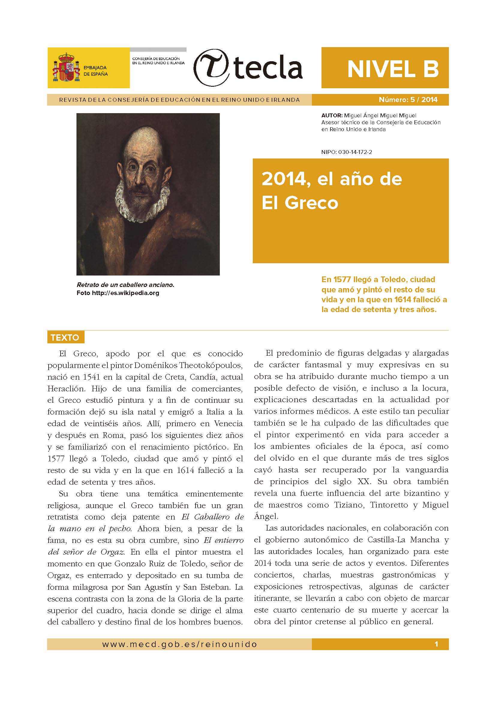 Tecla nº 5/2014. Revista de la Consejería de Educación en el Reino Unido e Irlanda
