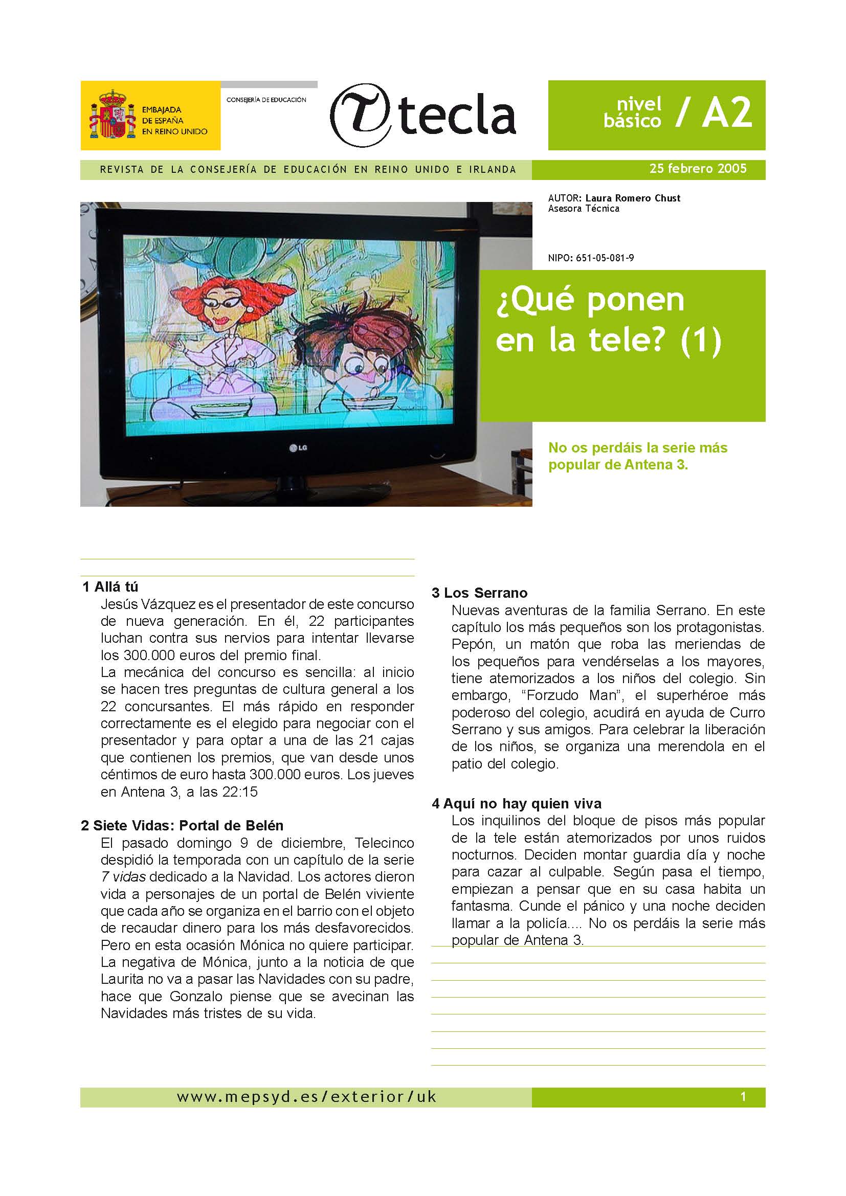Tecla. Revista de la Consejería de Educación en Reino Unido e Irlanda. 25 febrero 2005