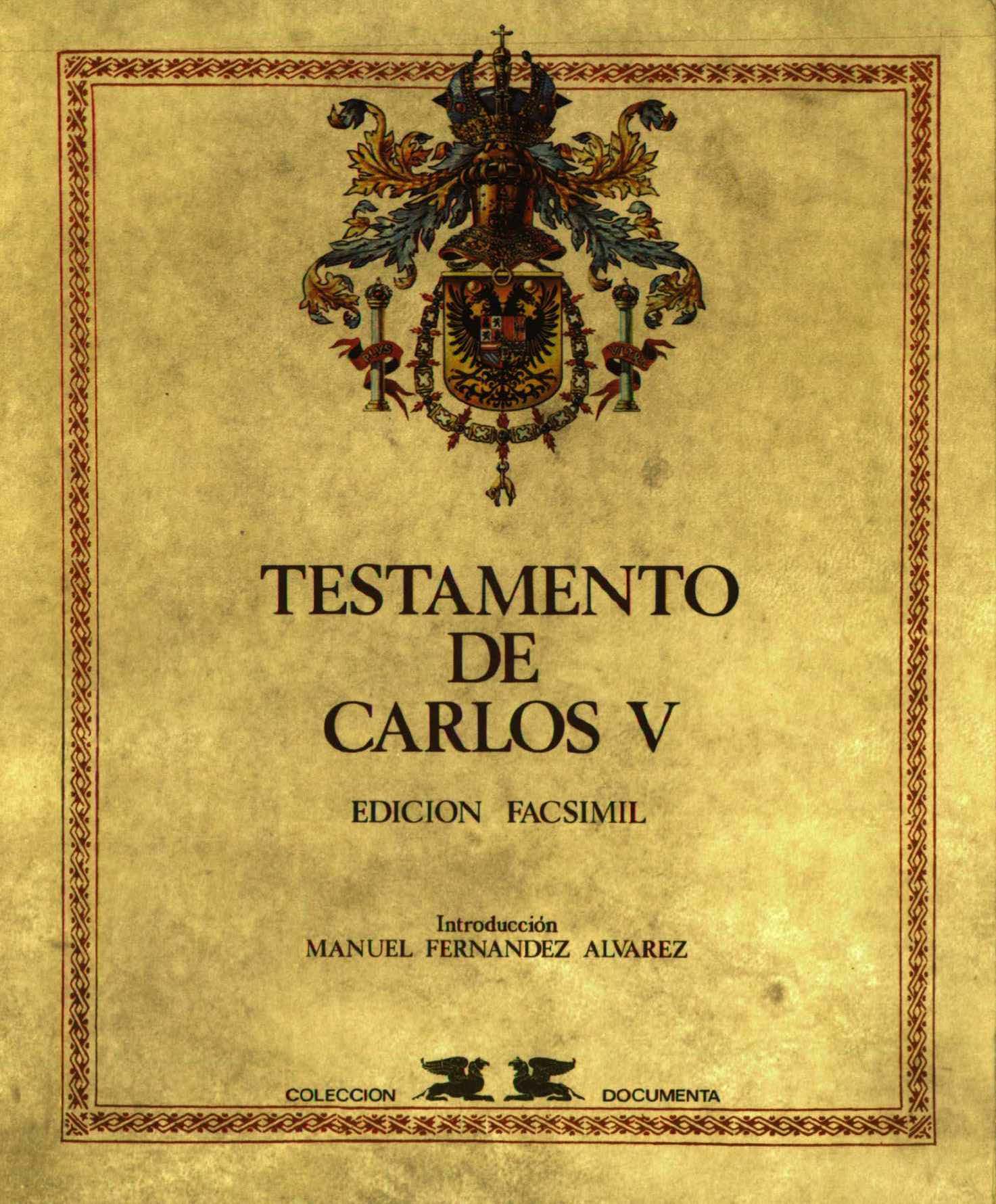 Estuche con cinco libros que contienen reproducción fotográfica junto con su transcripción de los testamentos de los cinco Reyes de la Casa de Austria en España.